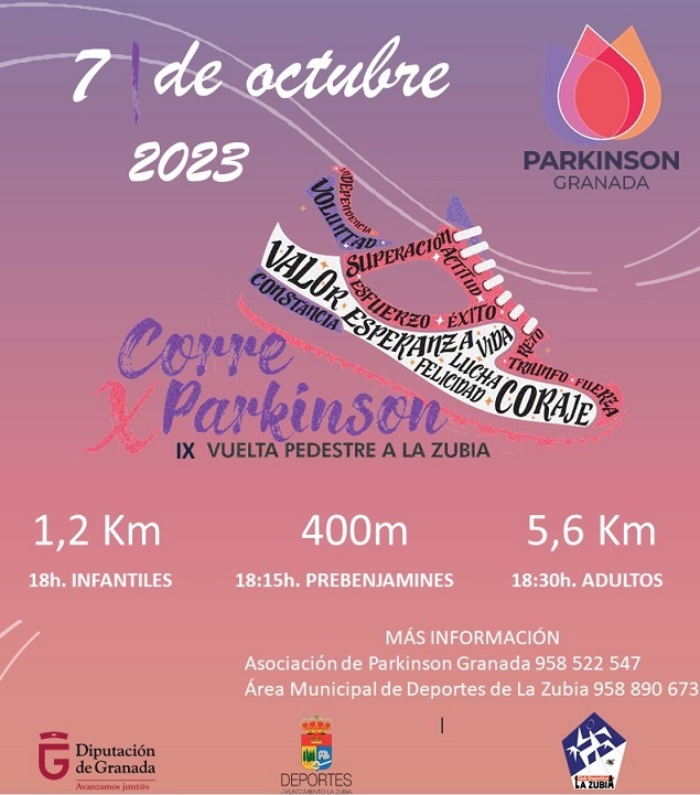 El sábado 7 de octubre es la fecha establecida para IX Vuelta Pedestre a La Zubia “Corre por el Parkinson”, una actividad solidaria donde todo lo recaudado será a beneficio de la Asociación Parkinson Granada.
