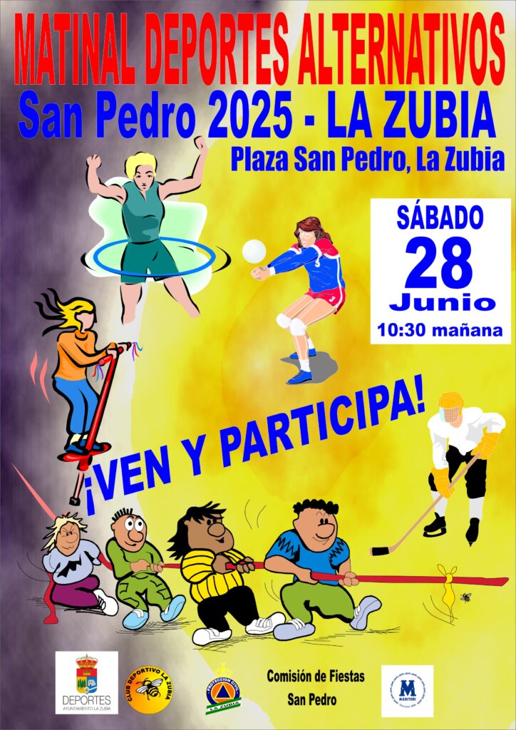 El próximo sábado 28 de junio tendrá lugar en la Plaza de San Pedro de La Zubia la Matinal de Deportes Alternativos que se viene organizando durante los últimos años con motivo de las Fiestas Populares de San Pedro de La Zubia.